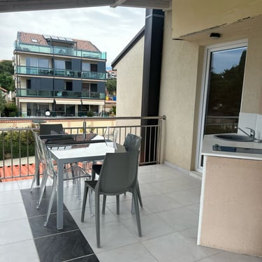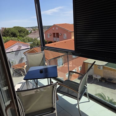 Na terasi se nalazi blagovaonski stol i udoban balkon namještaj, savršen za opuštanje i uživanje u boravku.