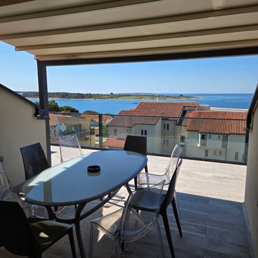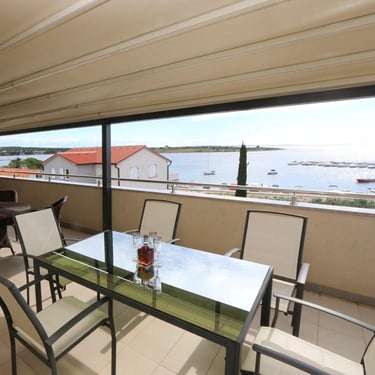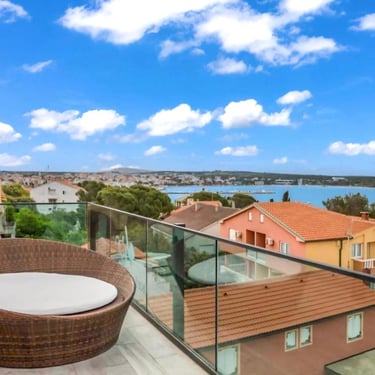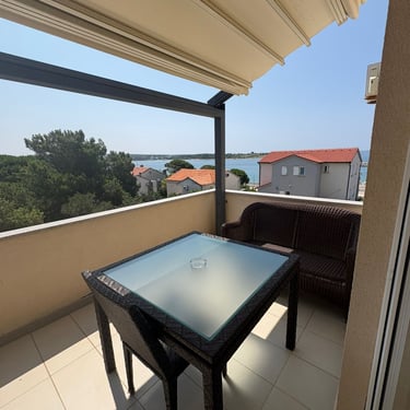 Veliki balkon pruža prekrasan pogled i savršeno mjesto za opuštanje nakon dana provedenog na moru ili u istraživanju Novalje.
