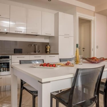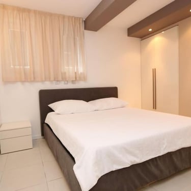 Elegantna jedinica od 135 m², idealna za veće grupe ili obitelji. Sastoji se od tri odvojene spavaće sobe, svaka s vlastitom kupaonicom, prostranog dnevnog boravka sa sofom na razvlačenje (za 2 osobe), velikom kutnom garniturom za odmor i potpuno opremljenom kuhinjom.