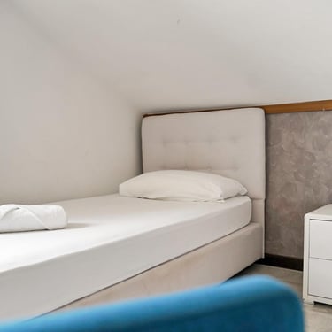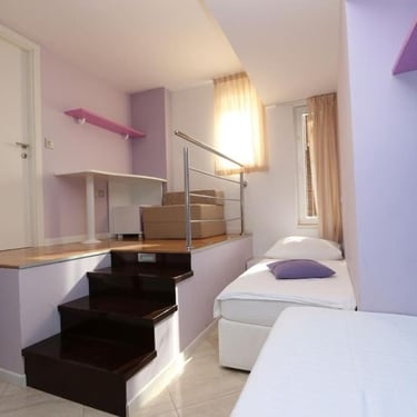 Na gornjem katu smještena je spavaća soba s dva odvojena kreveta. Iako manji od balkona ostalih većih apartmana, balkon ovog apartmana također pruža predivan pogled na Jadransko more i okolicu.