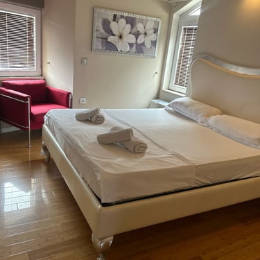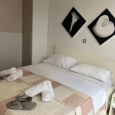 Dva šarmantna studio apartmana od 25 m², idealna za 2 osobe. Ovi apartmani nude udoban boravak s mogućnošću prilagodbe spavaćeg prostora prema željama gosta – krevet se može postaviti kao bračni ili dva odvojena ležaja.