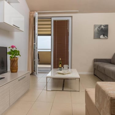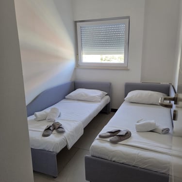 Svaki apartman sastoji se od spavaće sobe s bračnim krevetom (160x200), dnevnog boravka s kuhinjom i sofom na razvlačenje. Idealan izbor za parove, male obitelji ili prijatelje koji žele udoban boravak uz more.